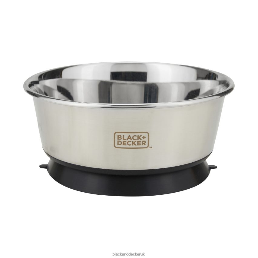 Black + Decker High quality stainless Steel Bowl allows for 5 Cup / 40 oz. Capacity. Worry no more about spills or bowls sliding along the floor, as the unique Suction Base will keep this bowl suctioned to the floor and avoid any skidding and spillage.