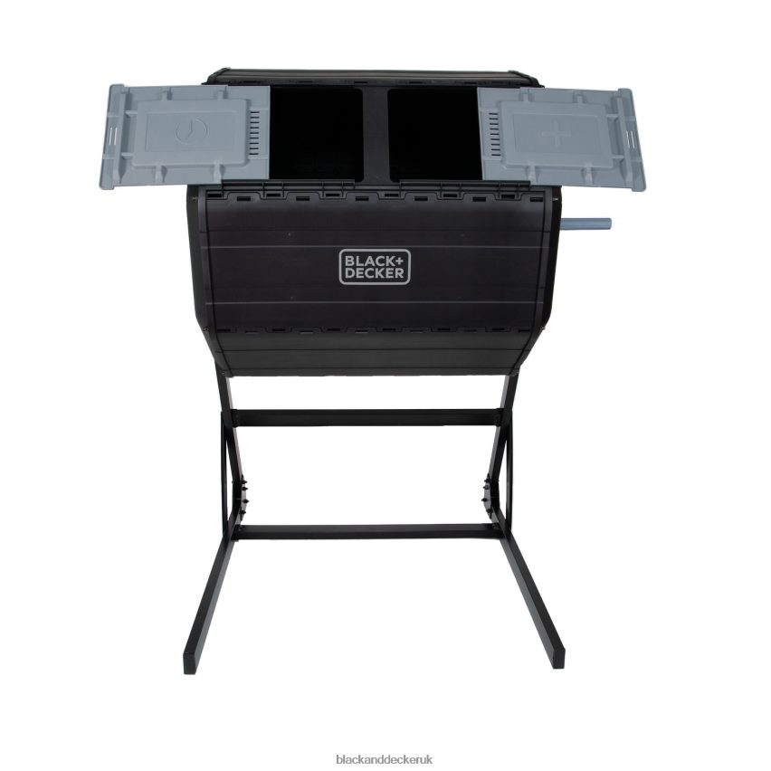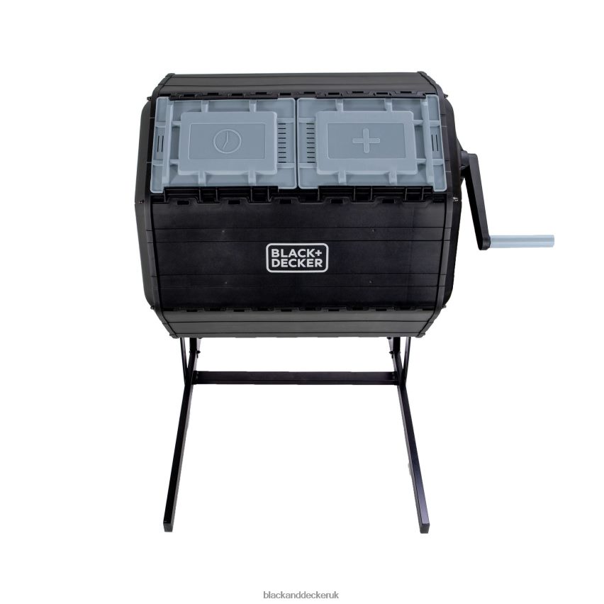 Turn food scraps and yard waste into nutrient-rich compost soil with the BLACK+DECKER Tumbler Composter. Tumble the compost barrel with minimal effort. The built-in, large handle with gear system makes it easy and efficient. Don’t get caught without compost. The dual chamber allows you to add compost ingredients to one side while letting the other side cure. Our Tumbler Composter accelerates the decomposition process by aerating the soil with the built-in mixing bars, giving you finished compost soil in weeks in ideal conditions.