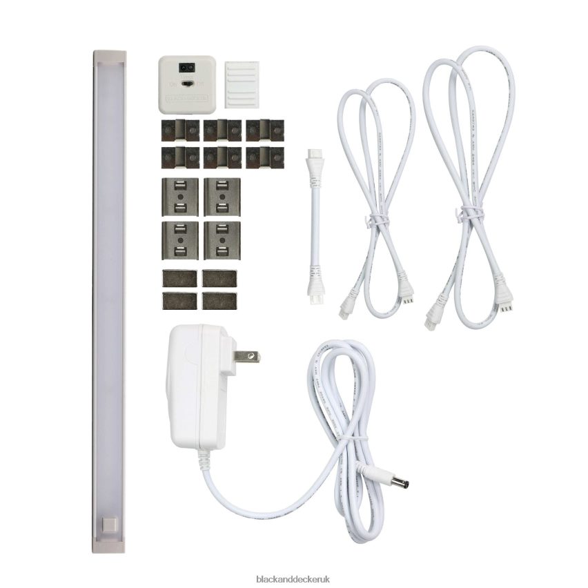 Led Light Bar (Power Button). Control Box. Ac Adapter. (4) Bar Mounting Clips. (4) Magnetic Mounting Clips. (6) Wire Mounting Clips. (2) Mounting Screws. Jumper Extender. 4″ Jumper Wire. 12″ Jumper Wire. 30″ Jumper Wire